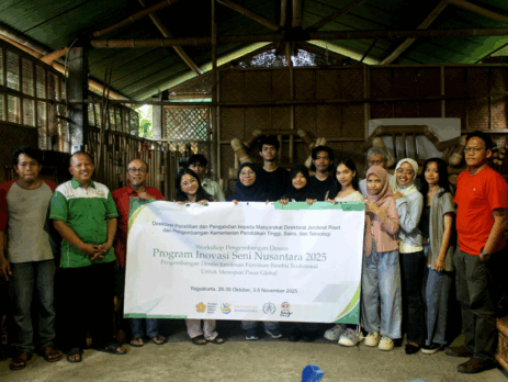 Sleman, 28–30 Oktober dan 3–5 November 2025 — Bambu telah lama dikenal sebagai material alami yang kokoh, ringan, lentur, mudah dibudidayakan, serta memiliki peran penting dalam kehidupan masyarakat Indonesia. Namun demikian, Himpunan Industri Mebel dan Kerajinan Indonesia (HIMKI) menilai bahwa pengembangan produk bambu di Kabupaten Sleman masih terhambat oleh keterbatasan kemampuan pelaku usaha kecil dalam menghasilkan desain yang inovatif. Kondisi ini membuat produk bambu lokal cenderung seragam, saling meniru, dan terjebak dalam persaingan harga, sehingga belum mampu memenuhi kebutuhan pasar global yang menuntut variasi desain yang lebih fungsional dan estetis.
