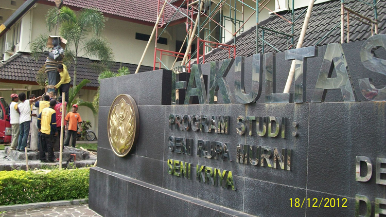 As an effort to organize the environment, since the orientation of the face (facing direction) of the Faculty of Fine Arts moved to the south side (boulevard and rectorate), various signs of its existence began to be focused on the south side. Among others, the brandname and also today's agenda is the removal of the statue of RJ Katamsi, ASRI's first director (which used to be located west of the Faculty of Fine Arts building).