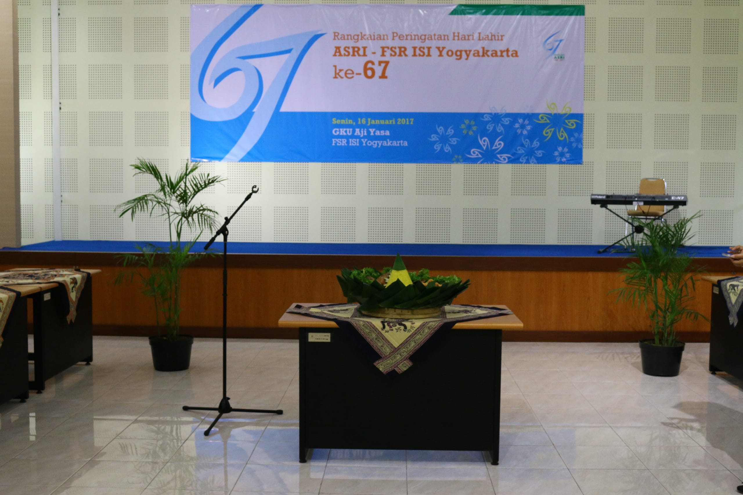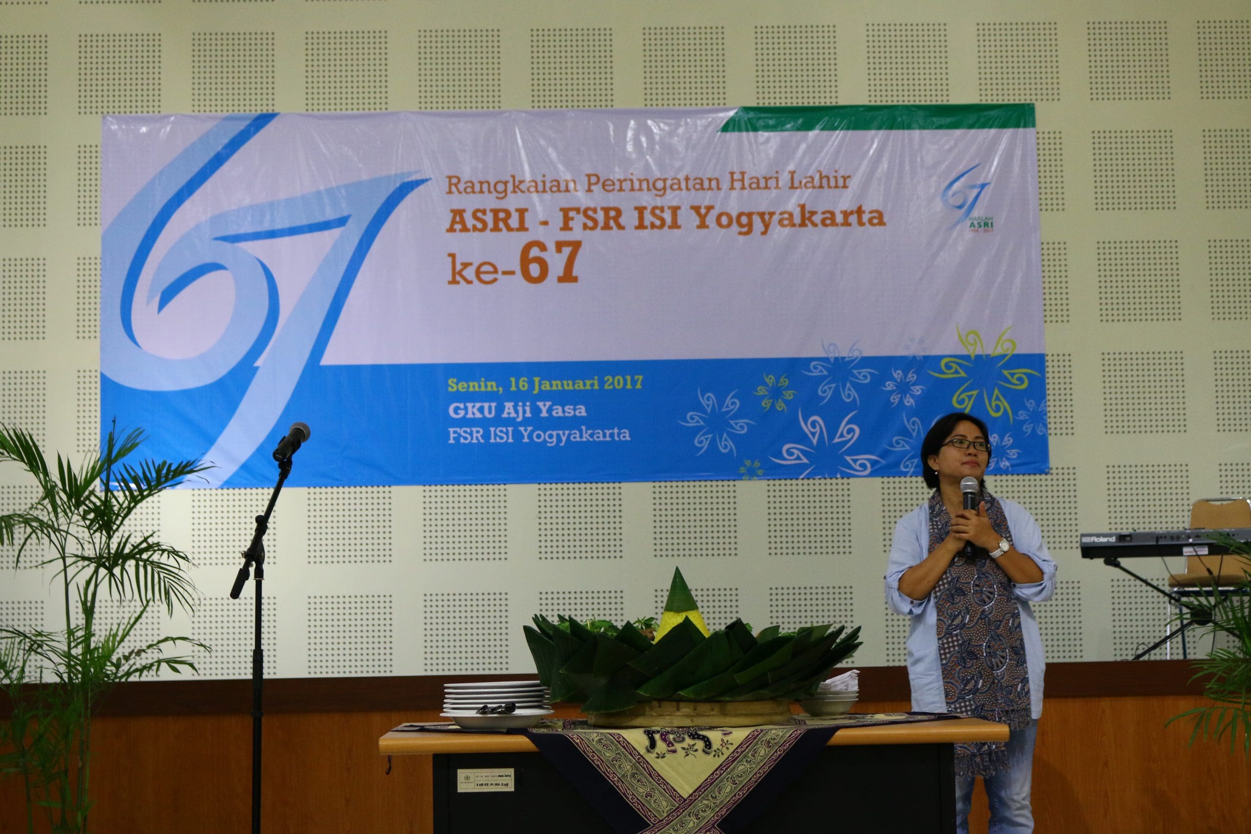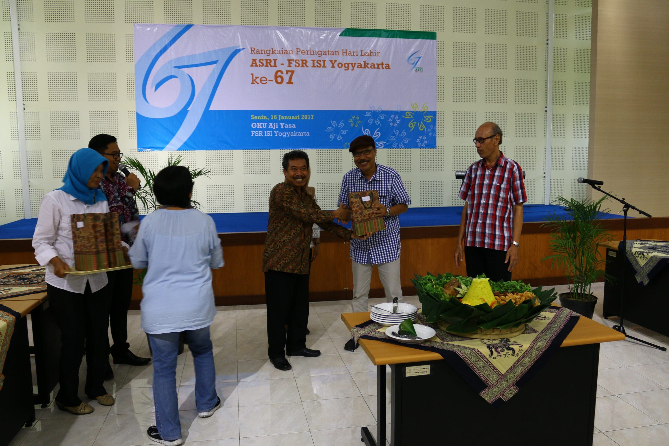 On Art Day, January 16, 2017 at Sasana Ajiyasa Building 2nd floor, the 67th anniversary of "ASRI" was held. This event is an annual event organized by the Faculty of Fine Arts ISI Yogyakarta to commemorate past history. This event is carried out in rotation every year, on this occasion the committee is the Art Management Department chaired by Arinta Agustina, S.Sn., M.A. who is the Secretary of the Art Management Department. as for the background and objectives of this activity are as follows: