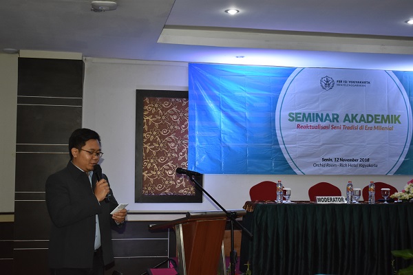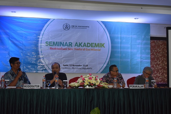 One of the academic quality improvement programs in the 2015-2019 ISI Yogyakarta Strategic Plan is to carry out the Academic Seminar agenda carried out in the FSR ISI Yogyakarta unit in the 2018/2019 academic year for lecturers. In 2018, FSR ISI Yogyakarta specifically proposes a theme, namely: Re-Actualizing Art Traditions in the Millennium Era.