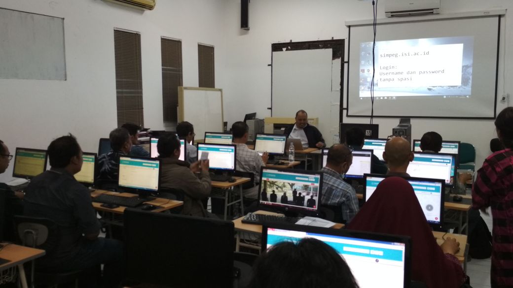 On 22-24 January 2018, located in the lab. computer lt.1 Interior Design Study Program FSR ISI Yogyakarta has been held socialization of SIMPEG and BKD Online for lecturers at FSR ISI Yogyakarta. The activity was attended by all lecturers at FSR ISI Yogyakarta with alternating schedules. This socialization was opened by the Assistant Dean II of FSR ISI Yogyakarta and guided by a team from UPT PUSKOM ISI Yogyakarta, namely Dr., Rina Martiara, M.Hum. (as head of UPT PUSKOM) and Nugroho, S.Kom. (as Head of Administration of UPT PUSKOM) and in collaboration with Sub. Finance and Personnel Section FSR ISI Yogyakarta.