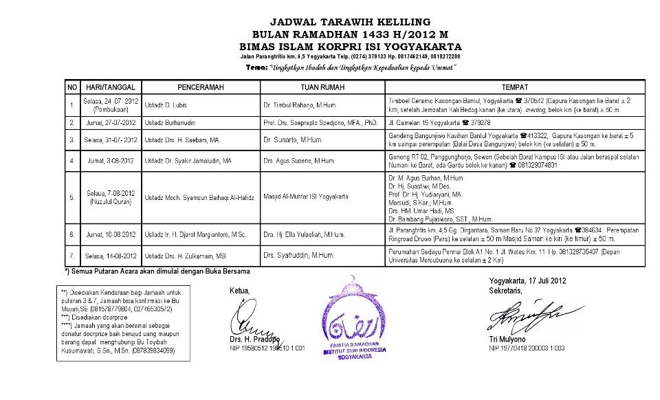 Ustadz Drs. H. Zulkarnain, MSI | Drs. Syafruddin, M.Hum. | Perumahan Sedayu Permai Blok A1 No. 1 Jl. Wates Km. 11 Hp. 081328735407 (Depan Universitas Mercubuana ke selatan ± 2 Km) |