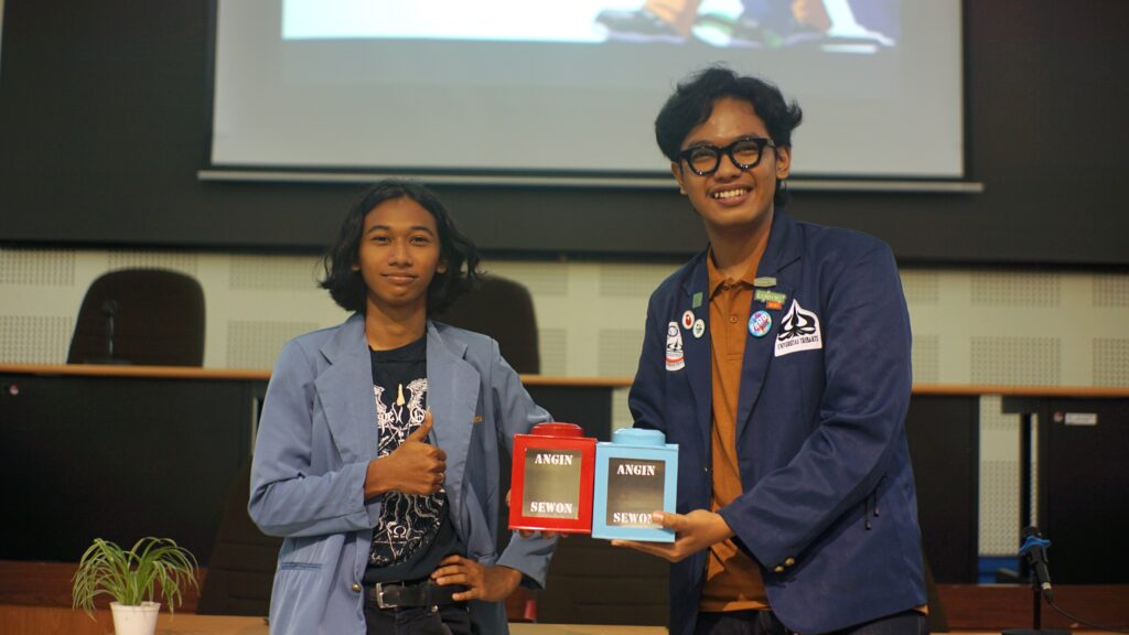 Sebagai bentuk apresiasi dan kenang-kenangan, STUDIS menghadirkan souvenir bertajuk “Angin Sewon”, yang dikemas dalam wadah kerupuk tradisional dan dihias dengan gambar stensil maskot kedua institusi. Souvenir ini menjadi simbol pertemuan dan pertukaran pengalaman antara kedua kampus. Penyerahan suvenir dilakukan oleh Ketua STUDIS/HIMA DKV ISI Yogyakarta, Barunata, kepada Ketua BEM FSRD Trisakti, I Made Deva Widhi Ardhanai.