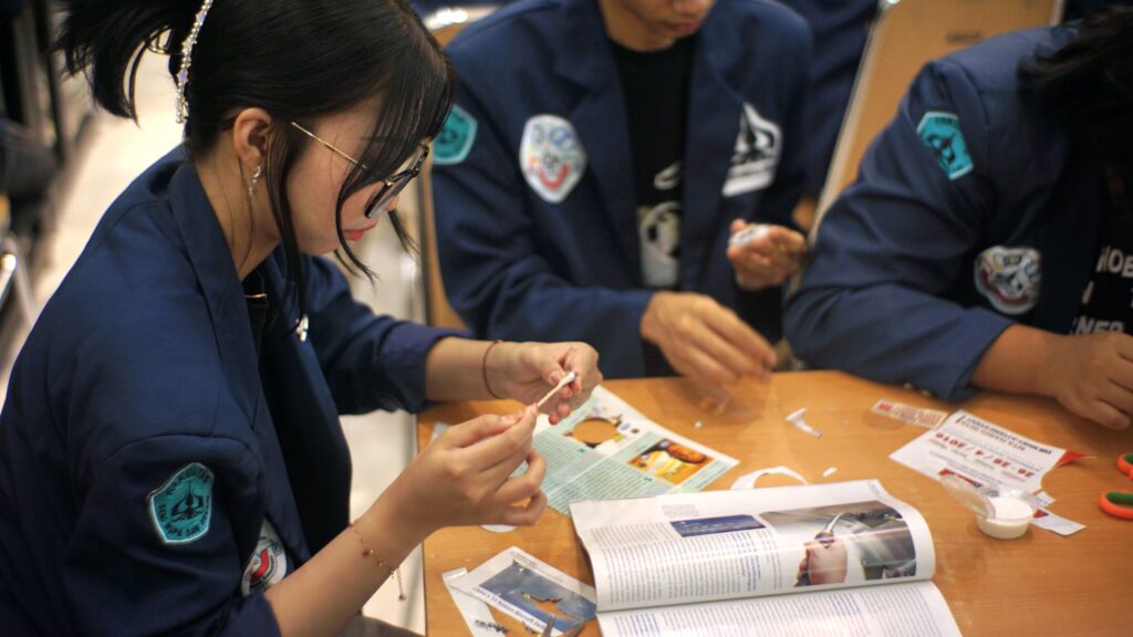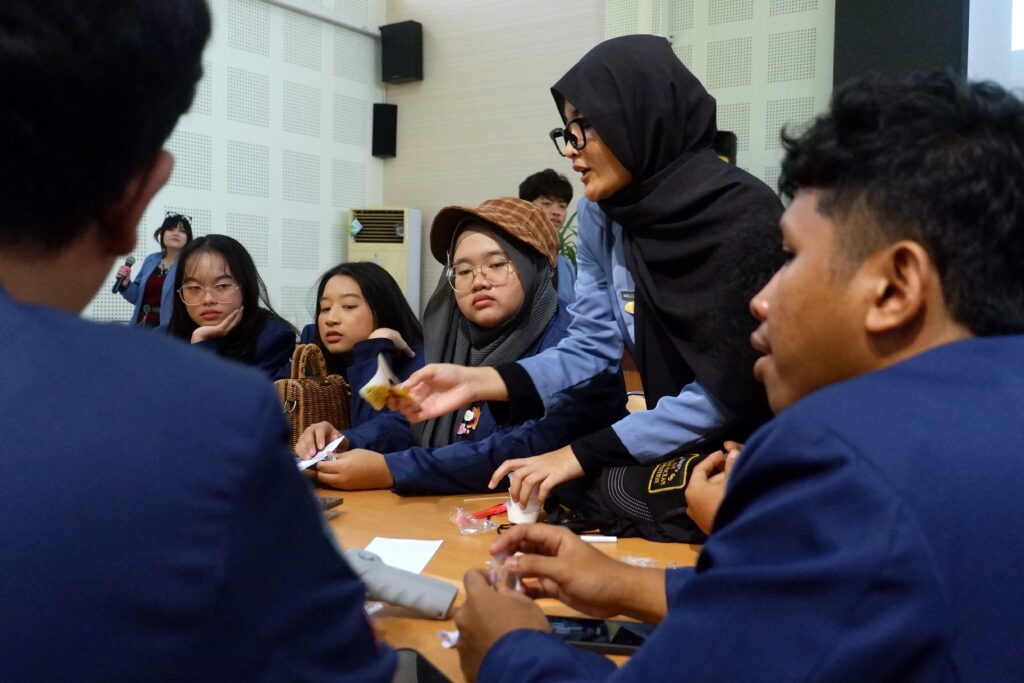 Hasil karya kolase kemudian diaplikasikan ke dalam media berupa pin bulat insert akrilik berdiameter 4,5 cm serta cover kaset yang diolah secara simbolik maupun eksplisit. Karya-karya tersebut menjadi artefak personal yang dapat dibawa pulang sebagai bentuk dokumentasi pengalaman kreatif. Melalui pendekatan ini, mahasiswa diajak untuk merasakan proses desain yang lebih intuitif dan menyenangkan, sekaligus melatih kemampuan merangkai ide melalui bentuk-bentuk ekspresif namun mampu menyampaikan pesan.