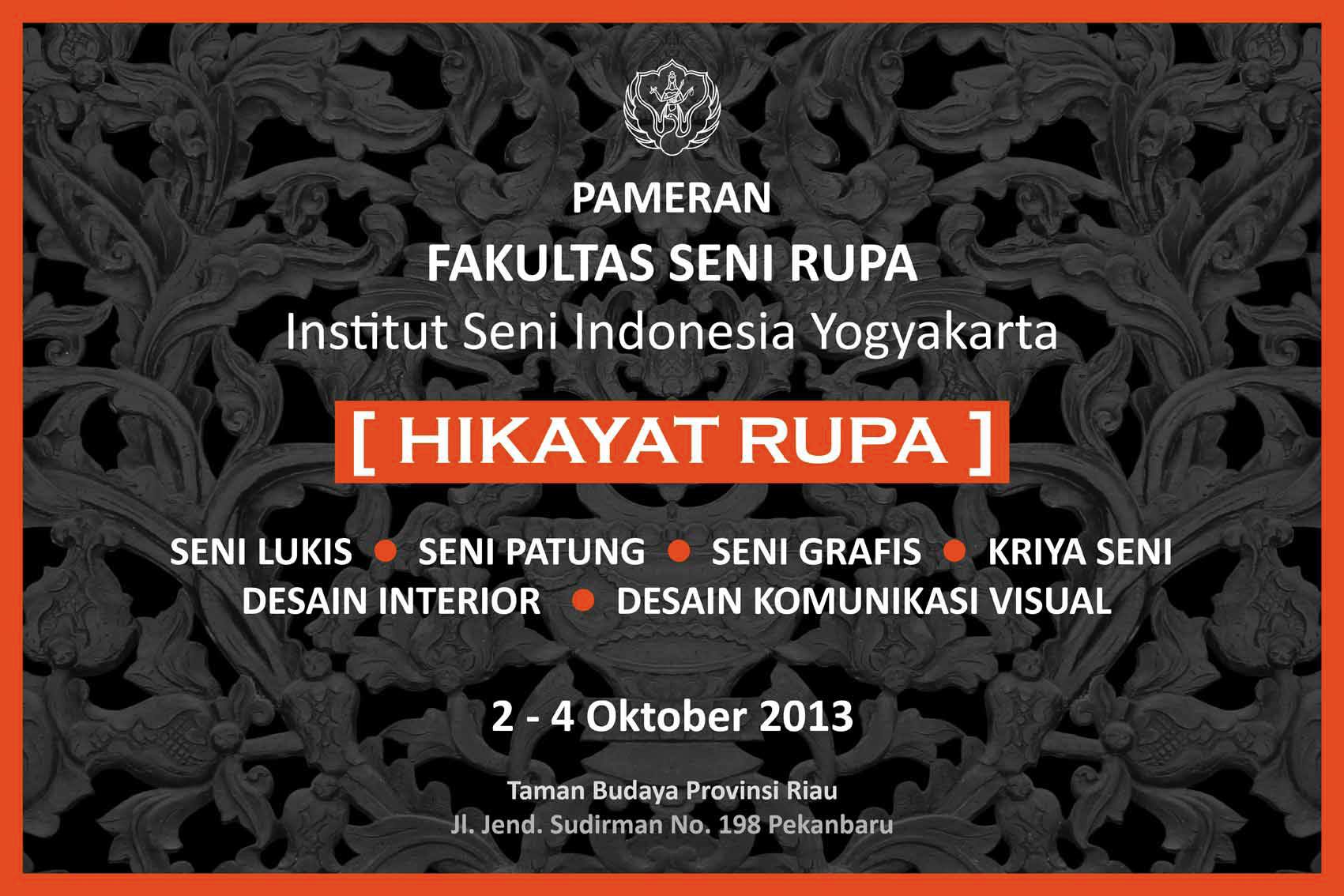 Pameran ini merupakan kali pertama civitas akademik Fakultas Seni Rupa Institut Seni Indonesia Yogyakarta (FSR ISI Yogyakarta) bertandang dan menggelar pameran seni rupa di Pekan Baru melalui Taman Budaya Riau. Momen ini mempunyai arti penting, karena bertujuan untuk memperkenalkan keberagaman produk seni rupa dengan berbagai kandungan artistik, pun filosofis yang dimilikinya serta mempresentasikan keragaman hasil capaian pendidikan FSR ISI Yogyakarta. Dengan demikian akan membuka cakrawala baru yang lebih luas dan berkontribusi positif terhadap penciptaan karya seni di lingkungan seni rupa Riau. FSR ISI Yogyakarta sebagaimana tercatat dalam sejarah merupakan lembaga pendidikan seni rupa yang telah mengalami periode perkembangan selama 63 tahun, semenjak bentukan awal dari Akademi Seni Rupa Indonesia (ASRI) tahu 1950. Hasilnya, salah satunya dalam pameran sejumlah 60 karya seni terbaik mahasiswa dengan tajuk kuratorial ‘Hikayat Rupa: Art and Knowledge’ akan memberikan khasanah penampang visual capaian artistik dari berbagai jurusan seni meliputi Seni Rupa Murni , Seni Desain, dan Kriya Seni.