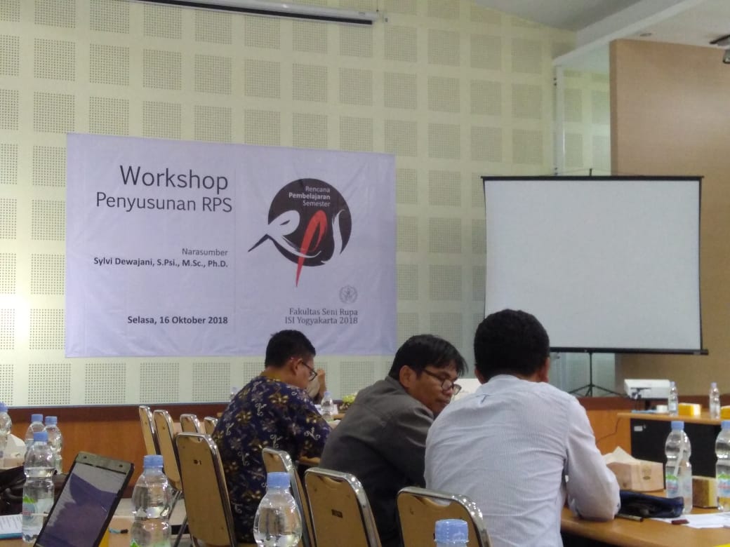 Dalam rangka mendorong program Tri Dharma Perguruan Tinggi bagi pada dosen dalam pengembangan keilmuannya, FSR ISI Yogyakarta pada tahun akademik 2018/2019 menyelenggarakan program kegiatanWorkshop Penyusunan RPS (Rencana Pembelajaran Semester) bagi para dosen. Mengacu pada Renstra ISI Yogyakarta 2015-2019, pada poin B Peningkatan Mutu, Relevansi dan Daya Saing terutama pada pasal 15 tentang Evaluasi kualitas akademik dan proses pembelajaran di berbagai jenjang sesuai dengan KKNI. Secara khusus program ini ditujukan untuk memicu standar kualitas akademik dan kualitas SDM di tingkat Fakultas. Diperlukan pembimbingan dan pendampingan dari para ahli yang kompeten di dalam menyusun kerangka Rencana Pembelajaran Semester secara berkualitas dan memenuhi standar akademik. Melalui workshop ini diharapkan para dosen mendapat kemampuan dan penguasaan pengetahuan dari pakar yang kompeten di bidangnya sehingga diharapkan dapat meningkatkan kualitas pembelajaran pada para mahasiswa, sekaligus memantapkan kurikulum dan kualitas SDM sesuai visi misi yang diharapkan.